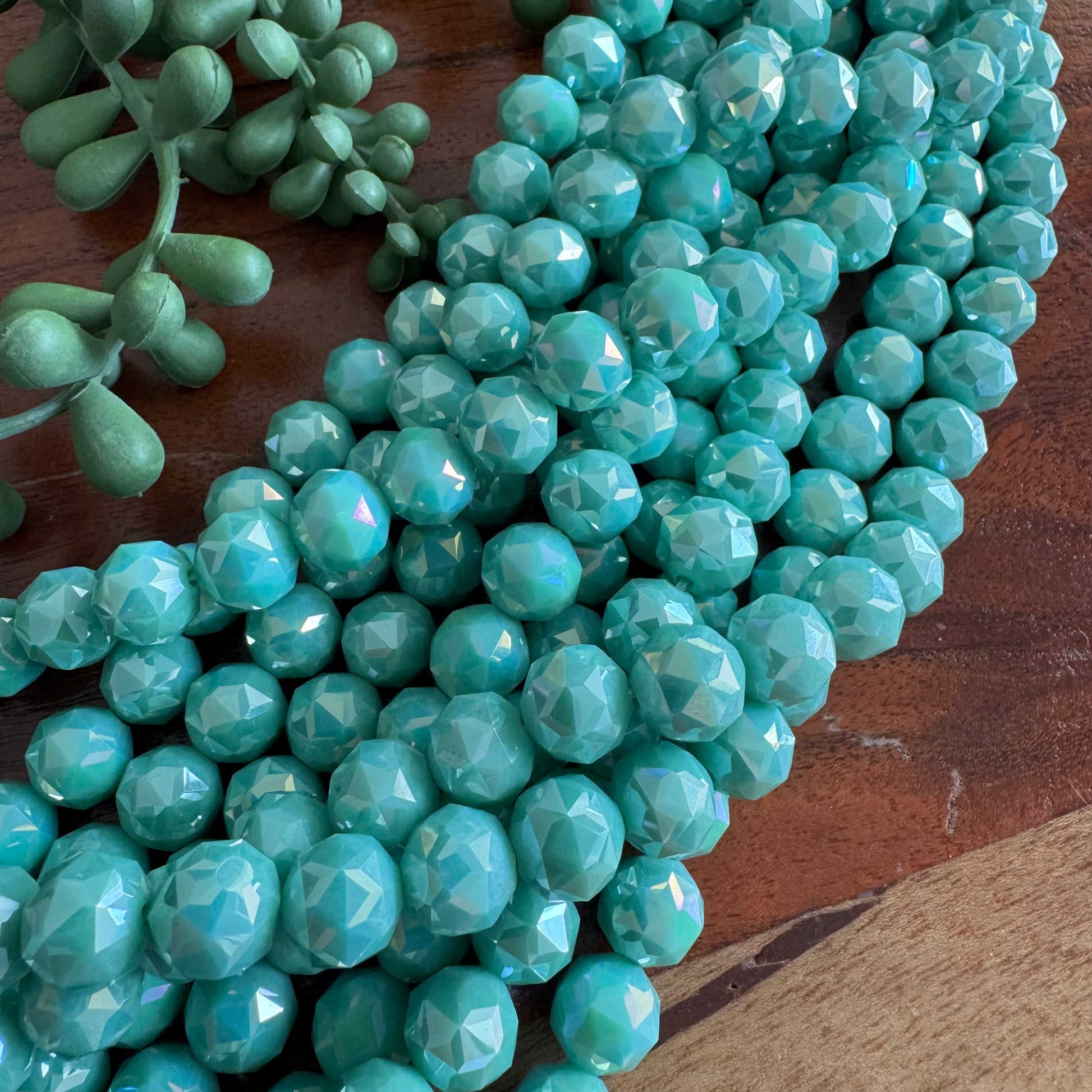 10mm Aqua Chinese Crystal Glass – Faceted & Iridescent