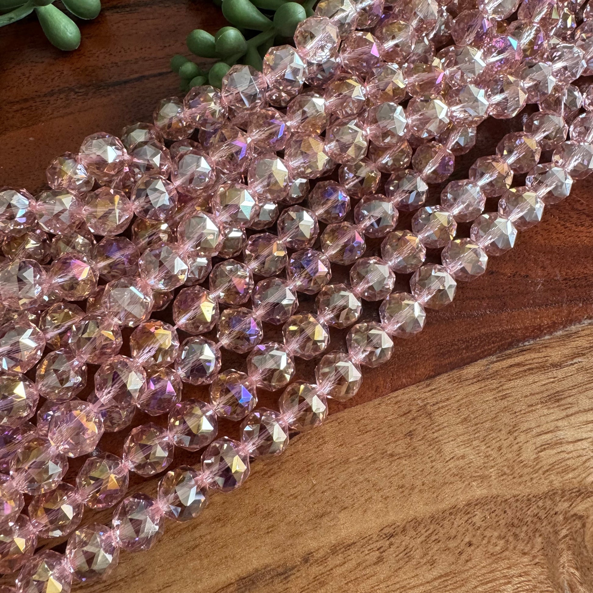 10mm Pink Chinese Crystal Glass – Faceted & Iridescent