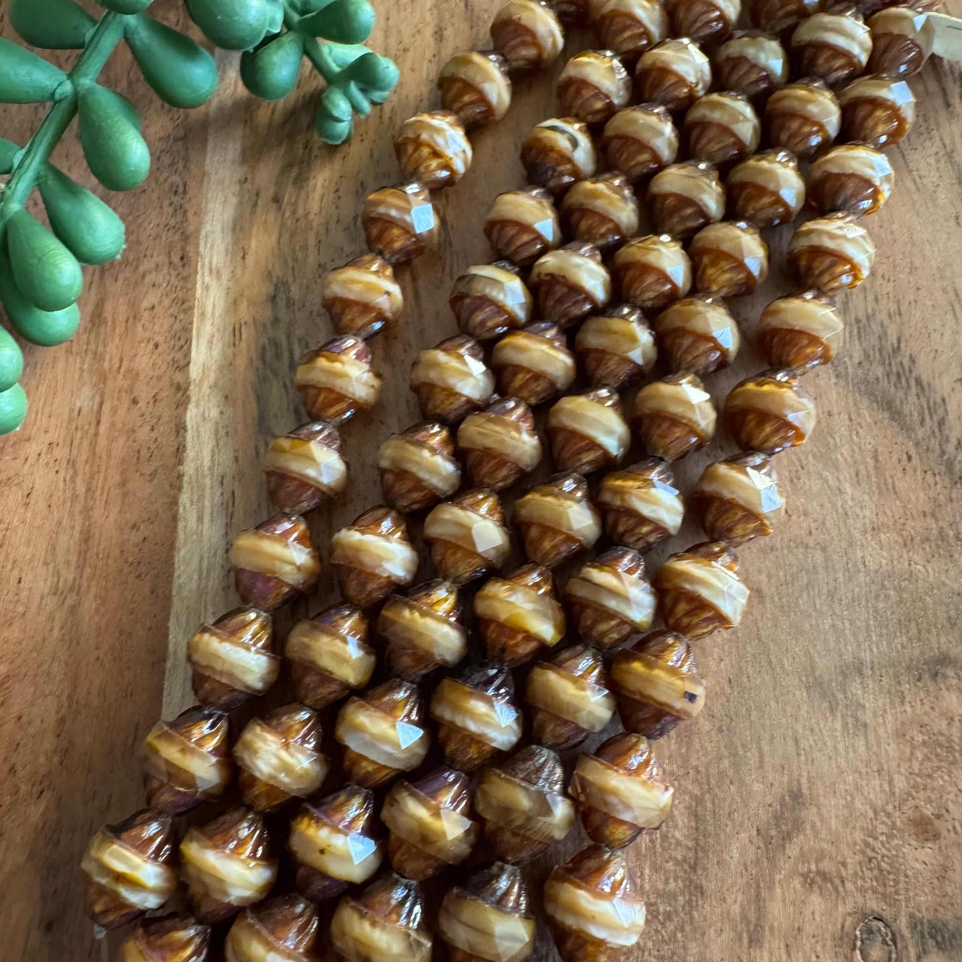 Beautiful 10x11mm Czech glass turbine beads. Vintage Czech stock. 8 Inch strand approx 14 beads.