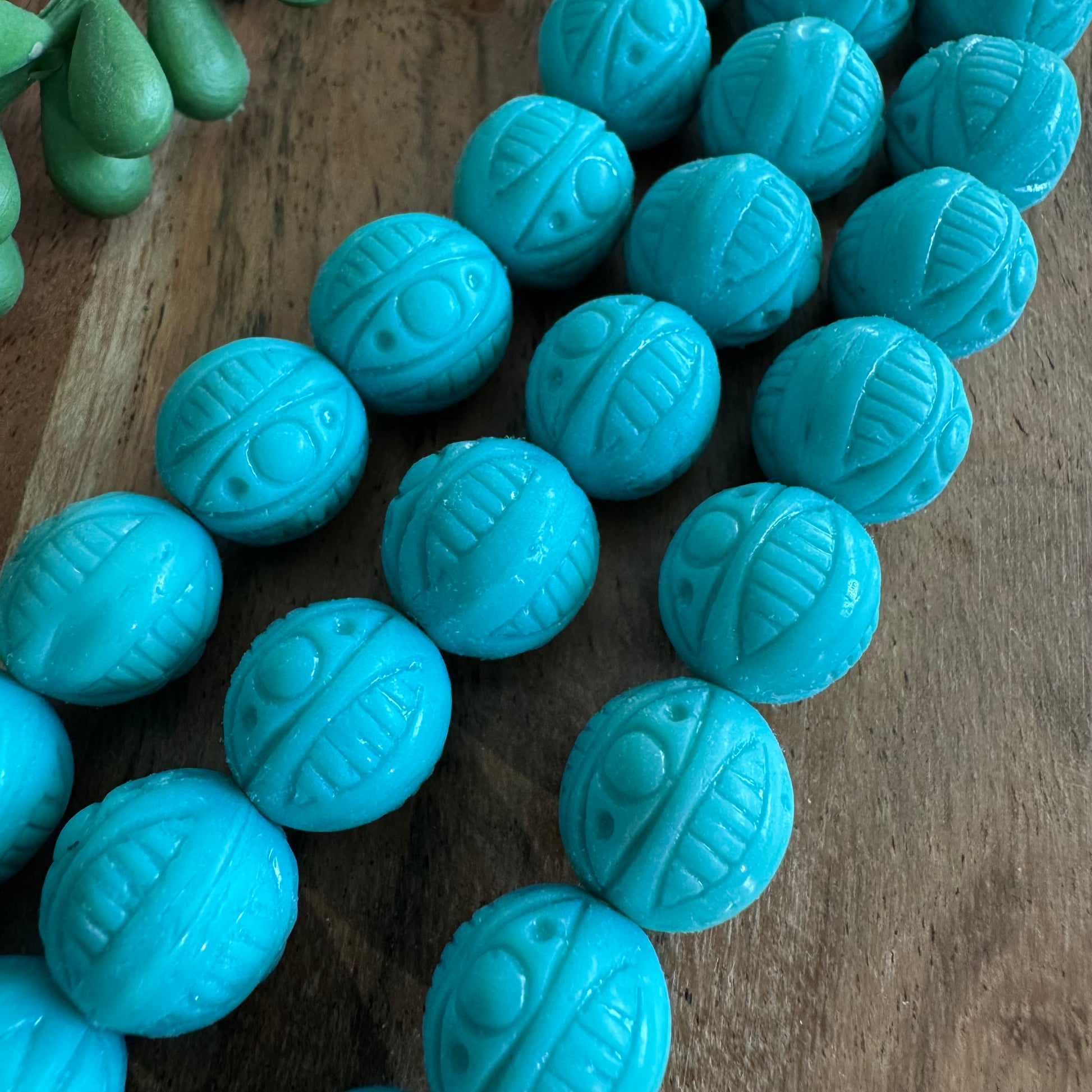 Vintage Czech Glass Turquoise Patterned Rounds Bead Strand