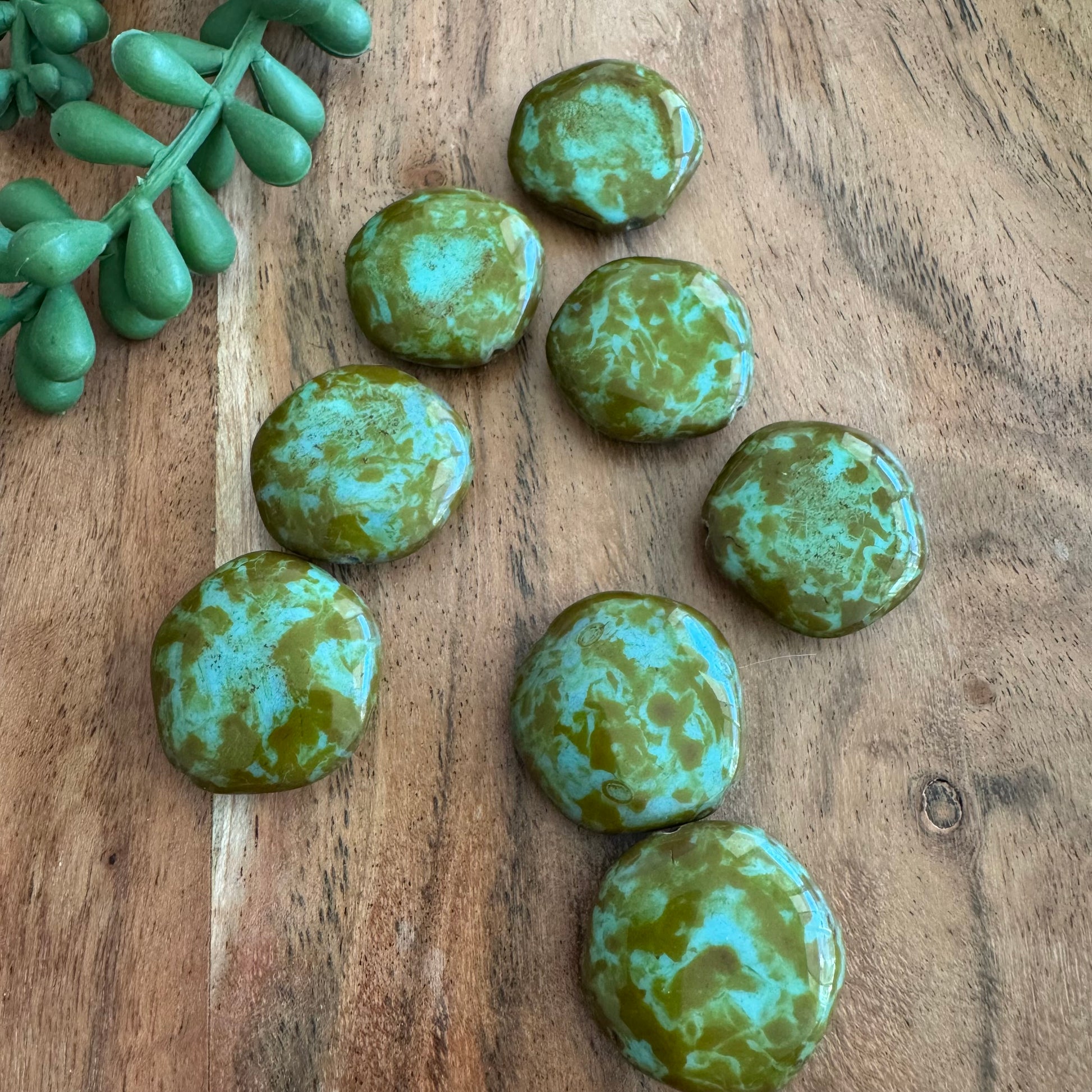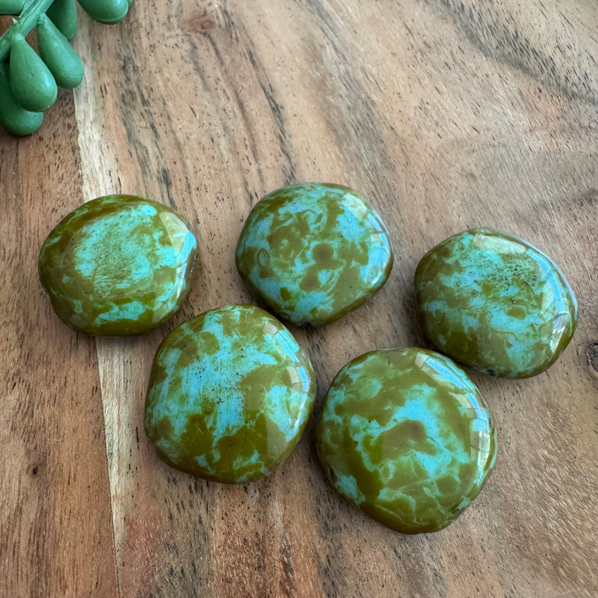 Beautiful 24mm Czech glass foval beads with a fabulous heavy Picasso finish. Vintage Czech stock. You’ll receive 1 bead.