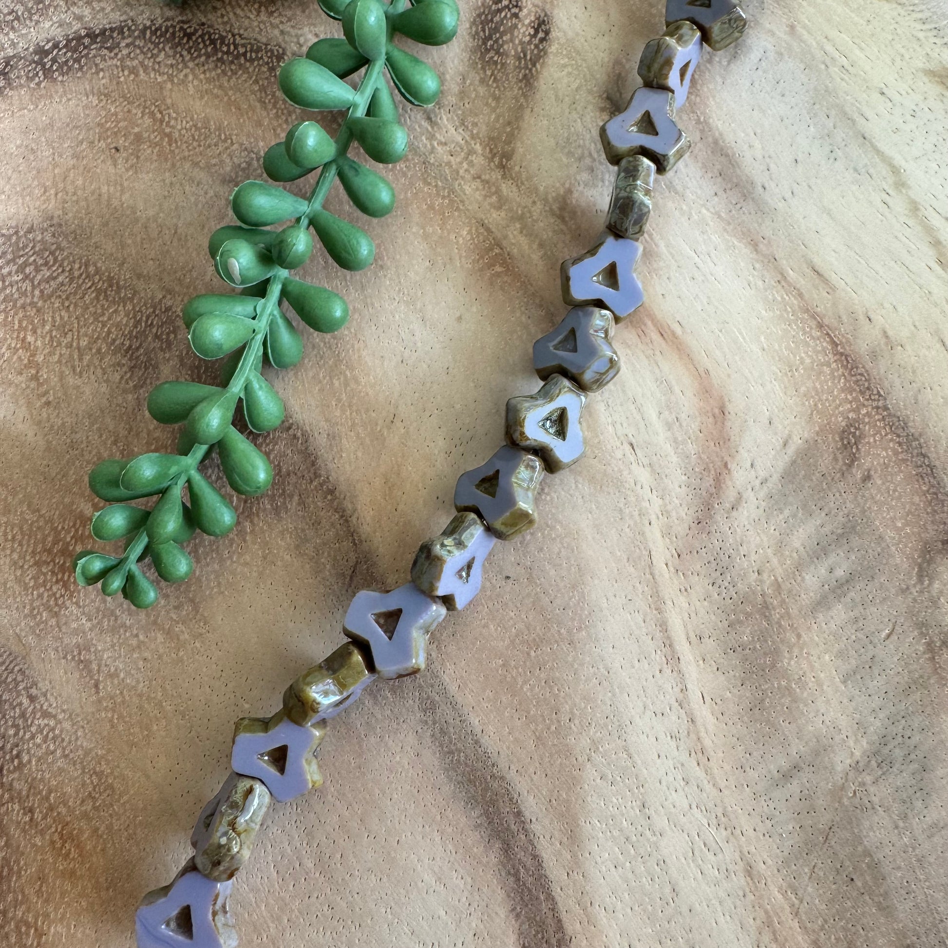An eye-catching strand that works beautifully as a focal element or in designs that highlight unique vintage glass shapes.